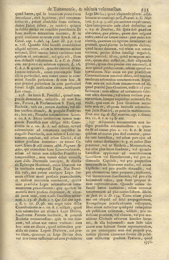 236. En los territorios sujetos al Romano Pontífice en cuanto a lo temporal, como son Roma, Ferrara y el Patrimonio de San Pedro, o de la iglesia, basta que el testamento se haga delante de dos o tres testigos y del propio presbítero,